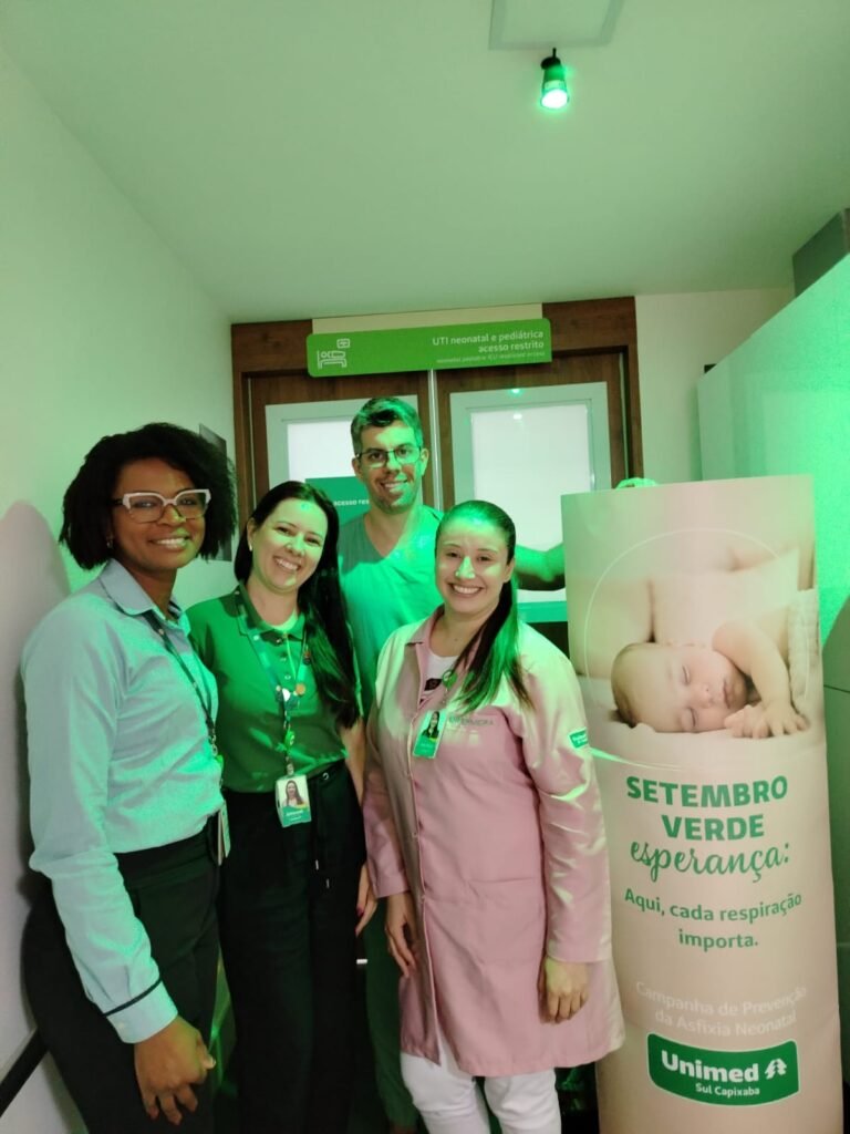 O mês de setembro foi marcado pela campanha Setembro Verde Esperança, que chamou atenção para a prevenção da asfixia perinatal, uma condição que pode trazer consequências graves para o recém-nascido. A Unimed Sul Capixaba promoveu ações no Hospital Materno-Infantil, iluminando espaços da unidade e criando ambientes simbólicos para lembrar que cada respiração importa.