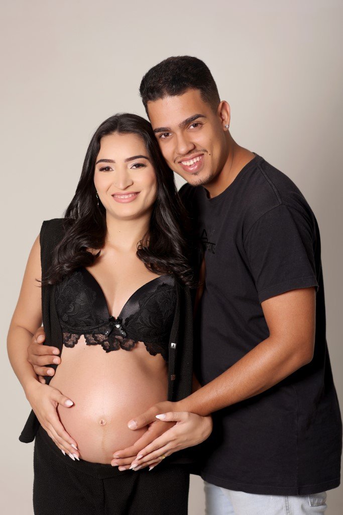 Os pais Paloma e Nicollas estão em contagem regressiva para a chegada do bebê Isaac. (foto: Erika Medeiros)
