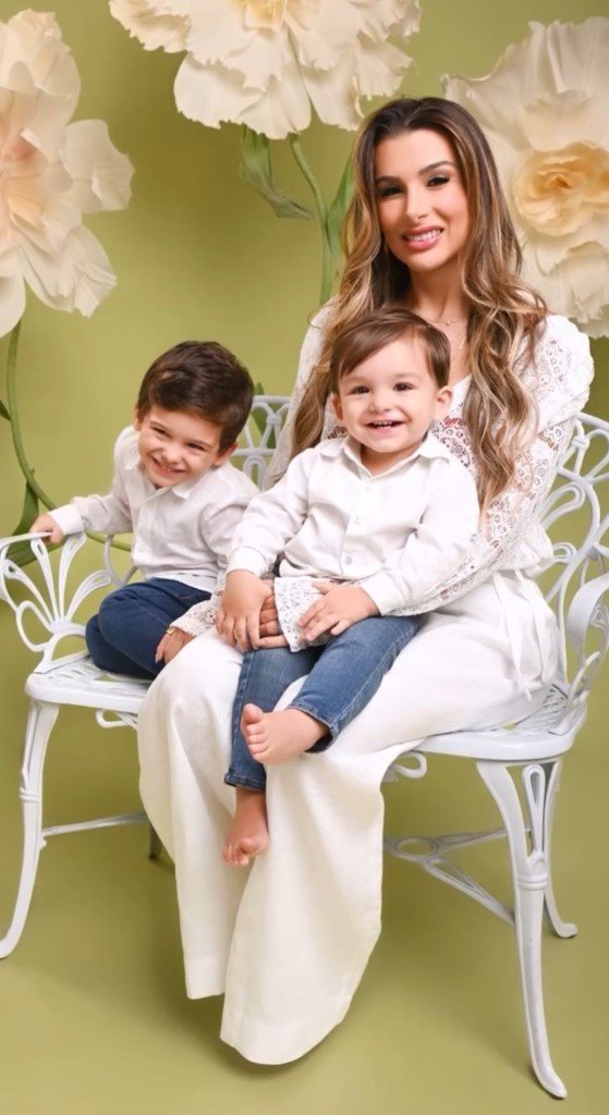 A linda empresária Débora Casagrande transborda amor pelos filhos Júlio César e Giovanni.