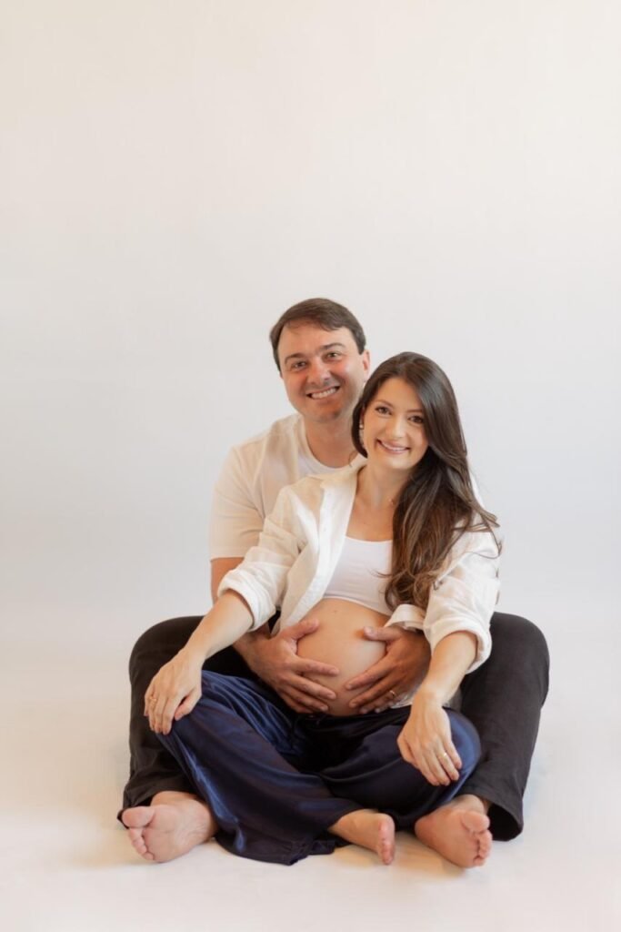 O advogado Thiago Stanzani e sua esposa, Fernanda Fraga Dercy, vivem a doce expectativa dos últimos instantes antes da chegada da pequena Ana — um momento de pura emoção e felicidade.