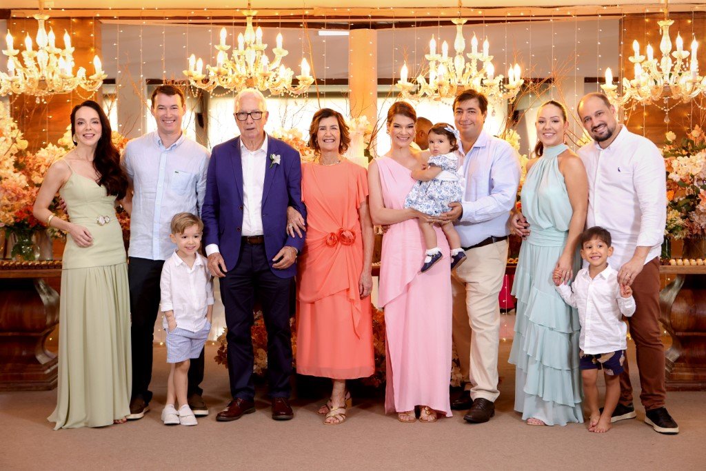 Reunindo a família, os queridos Ubirajara (Bira) e Maria Aparecida comemoram as Bodas de Ouro, em alto estilo.