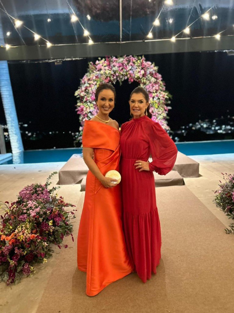 As belíssimas Patricia Rangel e Sabrina Grafanassi, em noite de festividade.