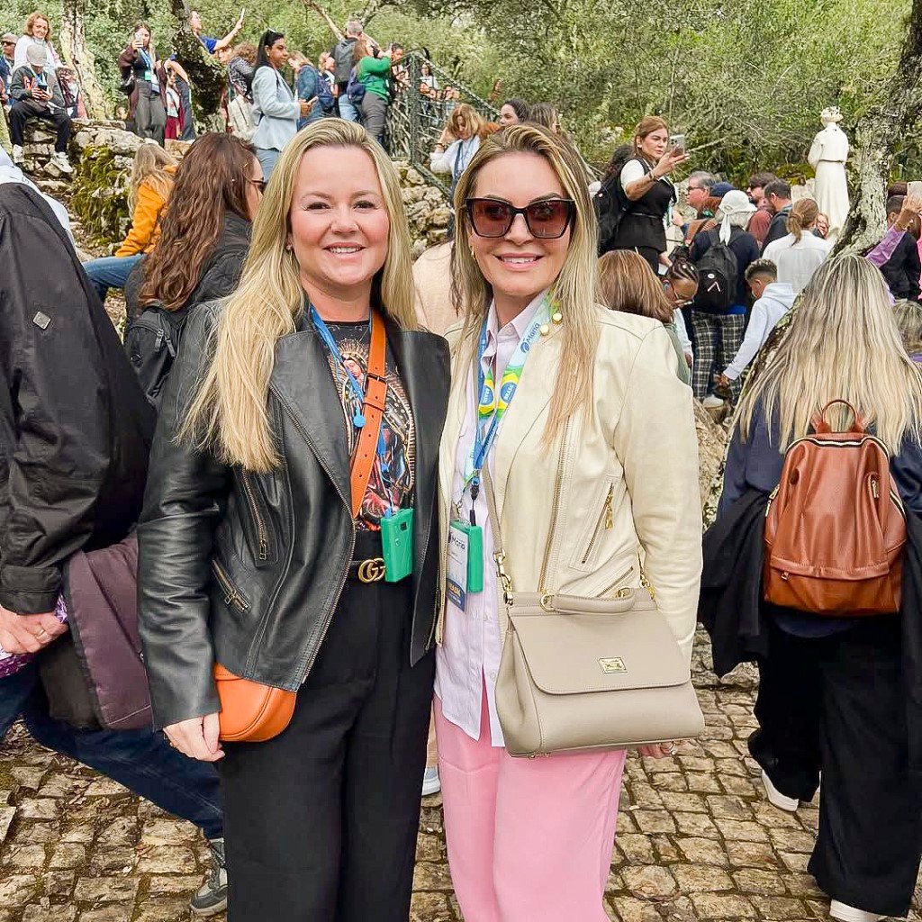 As bonitonas Ana Paula Clara e Sarita Mantovanelli aproveitaram momentos de fé e encanto em Fátima, Portugal.