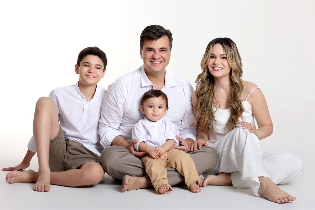 Vinícius, Melissa e os filhos Miguel e Mateus formam uma família encantadora, cheia de amor e alegria.